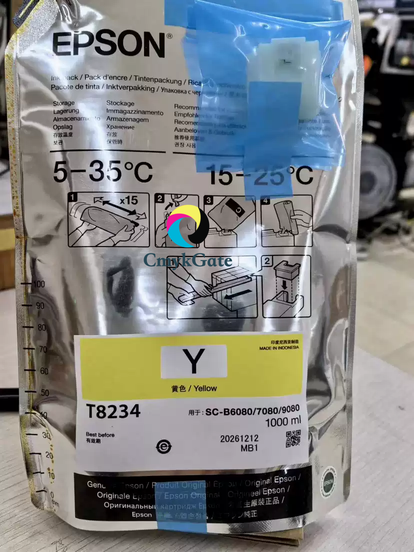 Epson original T8231–T8234 water-based dye ink is designed for B7080 / B9080 inkjet printers. It features high-purity dye formulation for vivid colors and smooth gradation, ideal for posters, CAD drawings, and general color printing. The 1L bag packaging ensures stable performance, consistent ink flow, and reduced risk of printhead clogging.