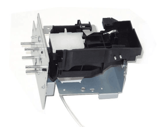 This Maintenance station without pump is suitable for Mutoh Valuejet 1608 Hybrid printers. This is the original Mutoh part (number DG-41889). The tube of this maintenance station has an inner diameter of 1mm and an outer diameter of 3mm.